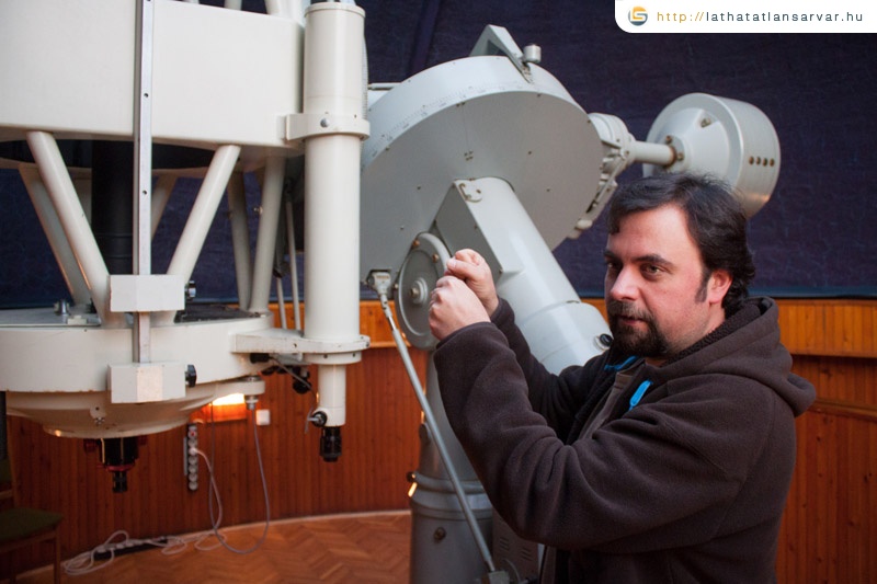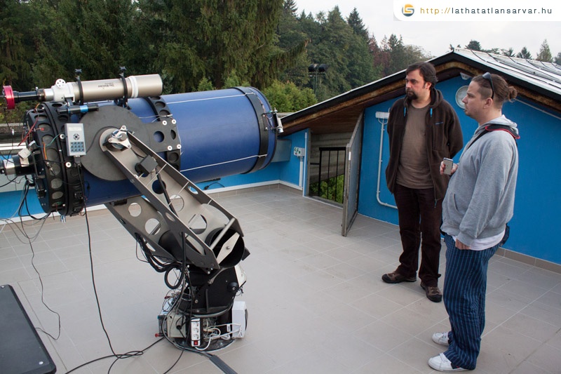 Dr. Jankovics István, az ELTE Gothard MKK igazgatója fogadott minket először a helyszínen, aki elmondta, hogy arra a funkcióra, amelyet ma ellát az állomás, már nemigen passzol a „Szputnyikfigyelő” megnevezés, hiszen egy olyan modern spektográffal összekapcsolt távcső található benne 2011 szeptembere óta, amely Magyarországon egyedülálló nagydiszperziós spektroszkópiai kutatásokra alkalmas, és nagyon jól hozza az eredményeket. Majd Csák Balázs tudományos munkatárs kísért végig minket a komplexumban, amelyhez – mint mondja – időnként bekéredzkednek fiatal egyetemisták, hogy áhitattal megcsodálják, tehát a Zalotay-kultusz egy bizonyos réteg berkein belül nagyonis életben van. A bejárat után a lépcsőfolyosóba lépve már az meglepő, hogy szinte kakaslépésekkel lehet csak haladni a kicsi lépcsőfokokon, de a legszürreálisabb a tetőhöz vezető igen alacsony ajtó, amelyen csak lehajolva lehet bemenni, hogy a tető elnyíló fedésének motorját bekapcsoljuk. Ez a tető rejti a már említett modern távcsövet, amely mérési eredményeit már saját maga (közvetlen emberi munka nélkül) közvetíti a földszinti teremben található számítógépnek. A magával a spektrográfegységgel összekapcsolt számítógép kis helyiségébe egy – a tömör betonfalon nyitott – szintén nagyjából vállmagasságig érő ajtón keresztül lehet bejutni. Néhány kisebb szomszédos szoba régesrégi dokumentumok raktáraként szolgál.